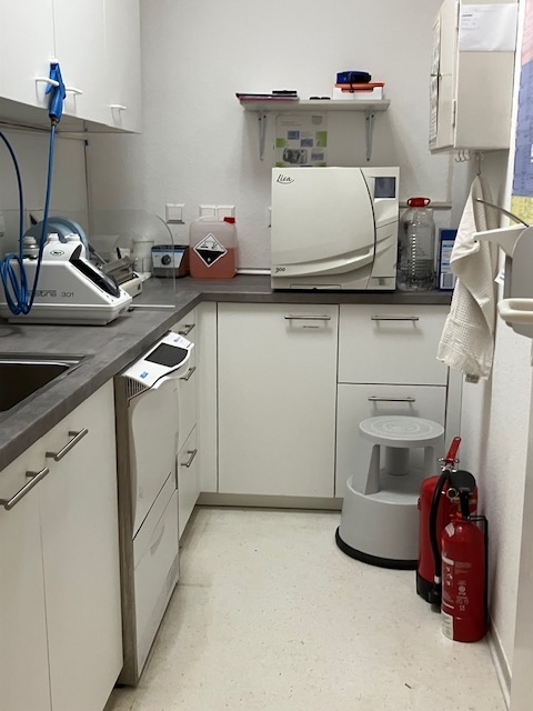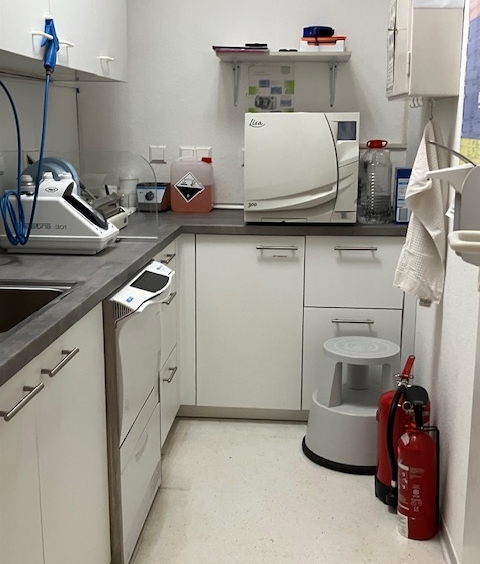 Ausstattung mit drei Behandlungszimmern, digitalem Röntgen und voll vernetzten Computerarbeitsplätzen.